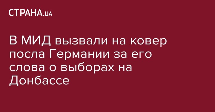 "Посла Федеративной республики Германия пригласили в МИД для получения объяснений относительно его высказываний, опубликованных в интервью изданию "РБК-Украина"", - заявила руководитель пресс-службы министерства Елена Ващенко.