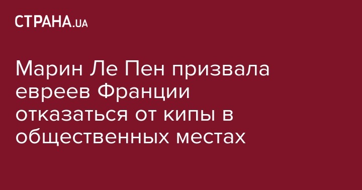 Кандидат на пост президента Франции от "Национального фронта" Марин Ле Пен призвала французских евреев отказаться от ношения кипы - традиционного иудейского головного убора в общественных местах ради победы над радикальным исламом и личной безопасности.