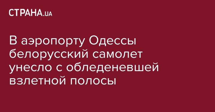 В аэропорту Одессы самолет "Белавиа", выполнявший рейс Минск - Одесса, из-за сильного ветра съехал со взлетно-посадочной полосы. Об этом сообщает в Facebook пользователь Александра Елисеева.