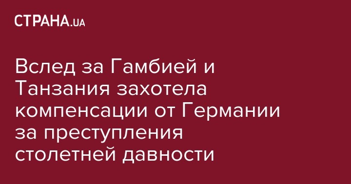 Мвиньи отметил, что аналогичные шаги уже предприняли Кения и Намибия, которые требуют репараций от правительств Германии и Великобритании. Немецкое посольство в Танзании пока не комментирует эту информацию. Отметим, что в январе этого года Германия выразила готовность заплатить компенсацию другой своей бывшей колонии. Намибии, за убийство 65.000 человек, совершенное в оккупации, которое историки называют первым геноцидом XX века.
