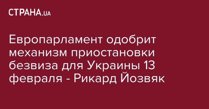 Европарламент одобрит механизм прекращения безвизового режима, от которого зависит вопрос о дальнейшей визовой либерализации для граждан Украины, уже 13 февраля. Об этом в Twitter написал корреспондент "Радио Свобода" в Брюсселе Рикард Йозвяк, который ранее довольно точно неоднократно первым озвучивал информацию по безвизу, которая потом подтверждалась.