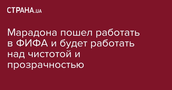 Марадона пошел работать в ФИФА и будет работать над чистотой и прозрачностью