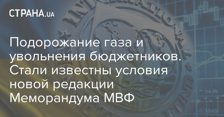 Подорожание газа и увольнения бюджетников. Стали известны условия новой редакции Меморандума МВФ