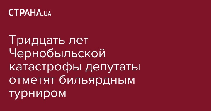 Комитет Верховной Рады Украины по вопросам семьи, молодежной политики, спорта и туризма решил довольно необычным способом отметить 30-ю годовщину Чернобыльской катастрофы и провести по такому случаю турнир по бильярду между народными депутатами, депутатами Киевского областного и городского советов, сообщил в Фейсбук журналист Владимир Бойко.