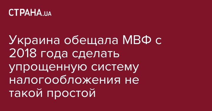 Украина обещала МВФ с 2018 года сделать упрощенную систему налогообложения не такой простой