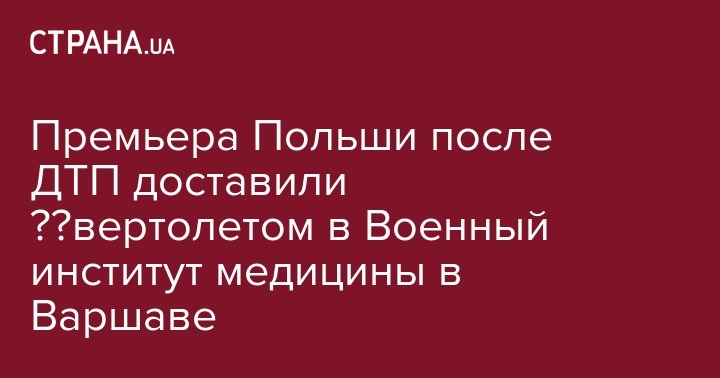 В субботу, 11 февраля, премьер Польши после ДТП доставлена вертолетом в Военный институт медицины в Варшаве. Об этом сообщает Telewizja Polska.