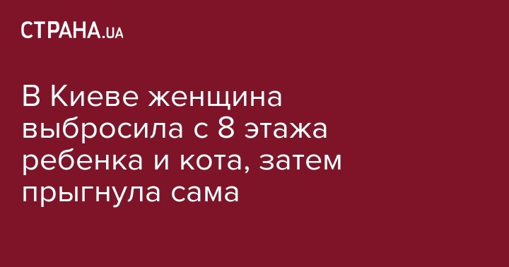 В Киеве женщина выбросила с 8 этажа ребенка и кота, затем прыгнула сама