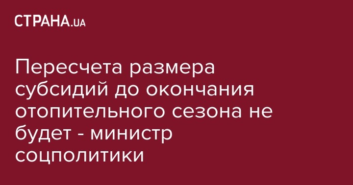 Пересчета размера субсидий до окончания отопительного сезона не будет - министр соцполитики