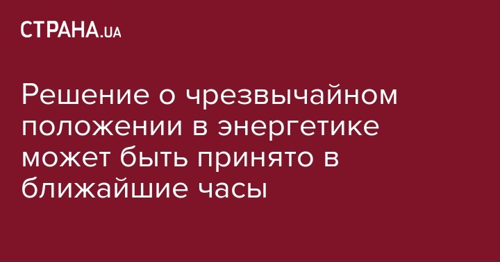 Решение о введении чрезвычайного положения в энергетике может быть вынесено на рассмотрение правительства уже в ближайшие часы. Об этом сообщил министр энергетики и угольной промышленности Игорь Насалик в ходе заседания Антикризисного энергетического штаба, передает УНИАН.