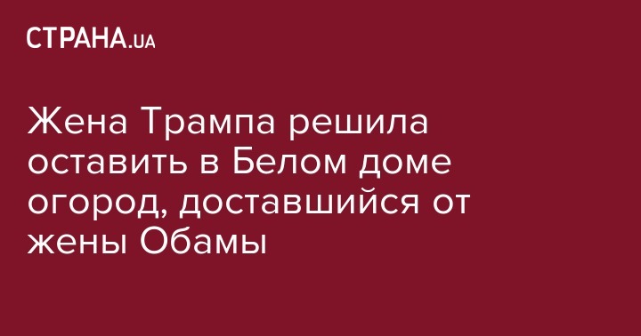 Супруга президента США Дональда Трампа Мелания планирует сохранить огород, который ее предшественница Мишель Обама обустроила на территории Белого дома. Об этом сообщает Time.