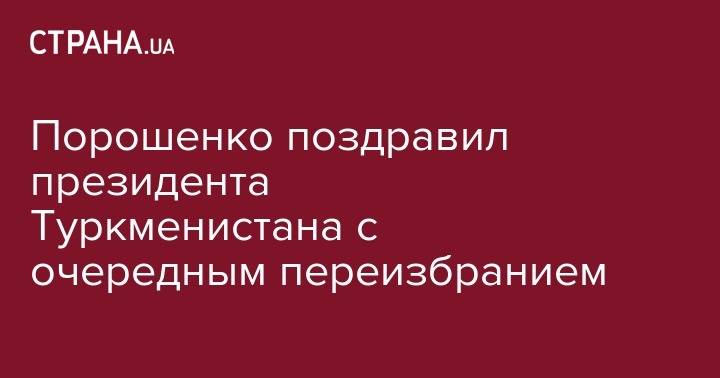 Президент Петр Порошенко поздравил Гурбангулы Бердымухамедова с переизбранием на пост президента Туркменистана, сообщает пресс-служба президента.