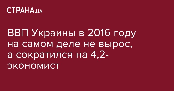 Управляющий партнер компании Capital Times Эрик Найман заявил, что ВВП Украины в 2016 году сократился на 4,2%, а не вырос на 2,2%, как сообщает Государственный комитет статистики. Об этом он написал в Facebook.