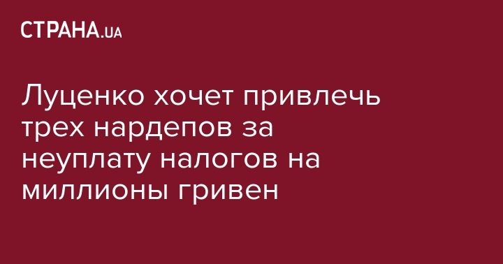 Генеральный прокурор Юрий Луценко заявил, что внесет в Верховную Раду представление о привлечении к ответственности трех народных депутатов из-за неуплаты налогов. Об этом он заявил во время совещания в ГПУ, которое транслировал телеканал "112 Украина".