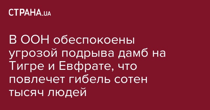 В ООН обеспокоены угрозой подрыва дамб на Тигре и Евфрате, что повлечет гибель сотен тысяч людей