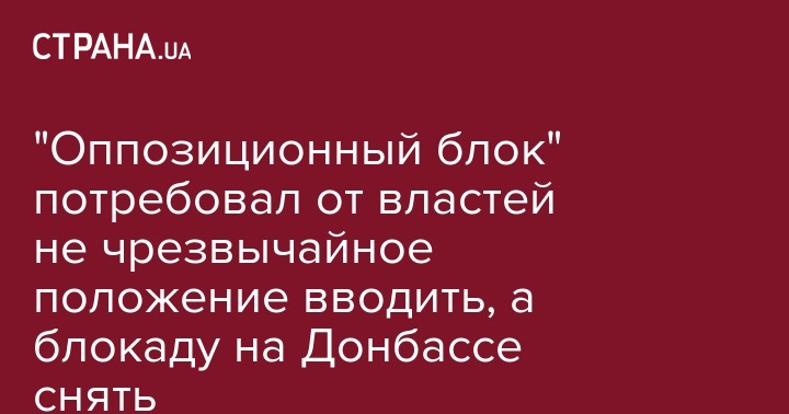"Оппозиционный блок" требует от власти отменить чрезвычайное положение в энергетическом секторе, введенное Кабмином. Кризис поставок угля необходимо решать не за счет веерных отключений для обычных граждан, а за счет прекращения блокады транспортных путей на Донбассе. Нынешний кризис в энергетике - искусственный. Незаконная блокада радикалами транспортных путей на Донбассе, которая длится уже несколько недель - это следствие бездействия власти. Не желая применять закон по отношению к преступникам, которые устроили блокаду, власть поставила под угрозу нормальную жизнь украинцев. Введение Кабмином чрезвычайного положения в энергетике свидетельствует, что власть предпочитает оставить жителей целого ряда областей без электричества и тепла вместо того, чтобы остановить произвол незаконных вооруженных формирований. "Оппозиционный блок"требует отменить режим чрезвычайного положения в энергетическом секторе и восстановить его стабильную работу. Блокаду на Донбассе необходимо прекратить, а ее участники должны понести уголовную ответственность", - говорится в заявлении партии.