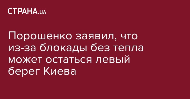 Из-за блокирования поставок угля с неподконтрольной территории Донбасса без тепла могут остаться многие города Украины, в том числе левый берег Киева. Об этом заявил президент Украины Петр Порошенко, пишет пресс-служба главы государства.