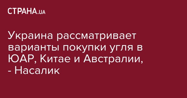 Украина рассматривает варианты покупки угля в ЮАР, Китае и Австралии, - Насалик
