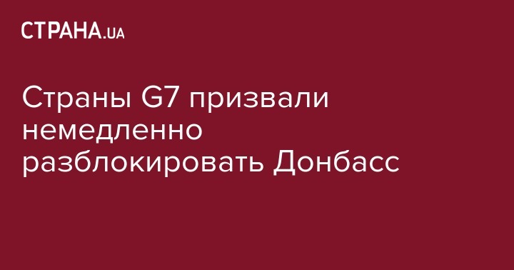 Страны "Большой семерки" призвали к немедленному снятию блокады на Донбассе. Об этом сообщает УНИАН со ссылкой на заявление послов G7.