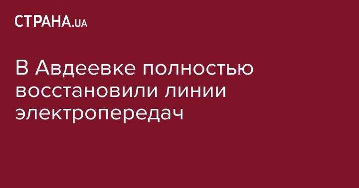 В Авдеевке, которая 18 февраля от обстрелов боевиков осталась без света, полностью восстановили линии электропередач. Об этом написал в своем Twitter пресс-секретарь президента Святослав Цеголко.