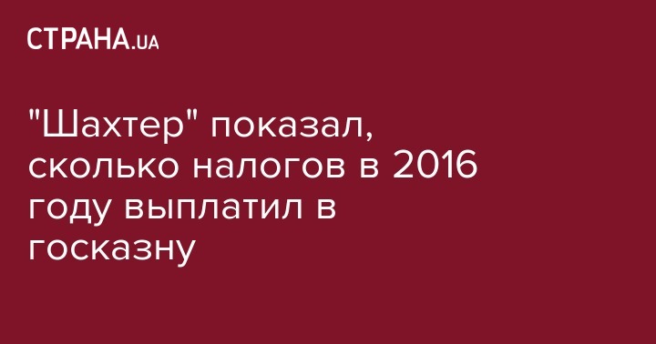 "В 2016 году ФК "Шахтер" заплатил в государственный бюджет Украины 426 032 000 гривен налогов. Основная доля налоговых платежей пришлась на единый налог с доходов физических лиц. За пять последних лет донецкий клуб пополнил государственный бюджет на 1 366 474 000 гривен", - говорится в сообщении клуба.