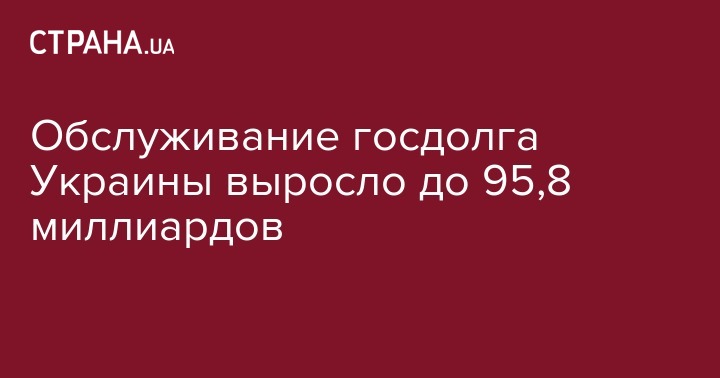 Украина за год потратила на обслуживание государственного долга 95,8 миллиардов гривень, что на 11,3 млрд грн, или на 13,4%, больше показателя за 2015 год (84,5 млрд грн). Об этом сообщается на сайте Госказначейства, передает УНИАН.