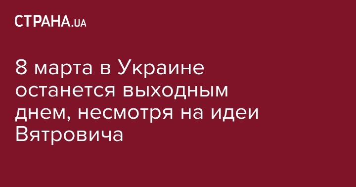 Документом предложено упразднить праздник 8 марта, а вместо него выходным сделать 9 марта - Шевченковский день. По состоянию на сегодняшней день за данную инициативу в Верховной Раде пока не голосовали.