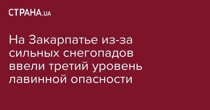 Вследствие ожидающихся в ближайшие два дня в высокогорье Закарпатской области сильных снегопадов будет введен третий уровень лавинной опасности. Об этом сообщила пресс-служба ГАК "Автомобильные дороги Украины".