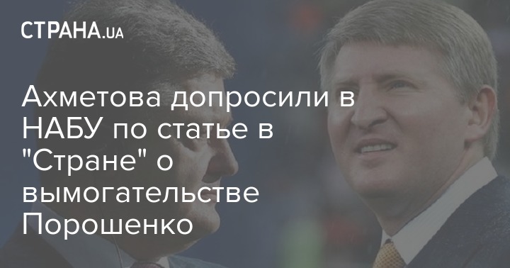 Ахметова допросили в НАБУ по статье в "Стране" о вымогательстве Порошенко