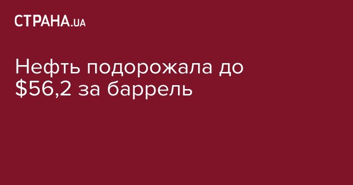 Нефть Brent в понедельник подорожала до $56,2 за баррель. Об этом сообщает "Интерфакс".