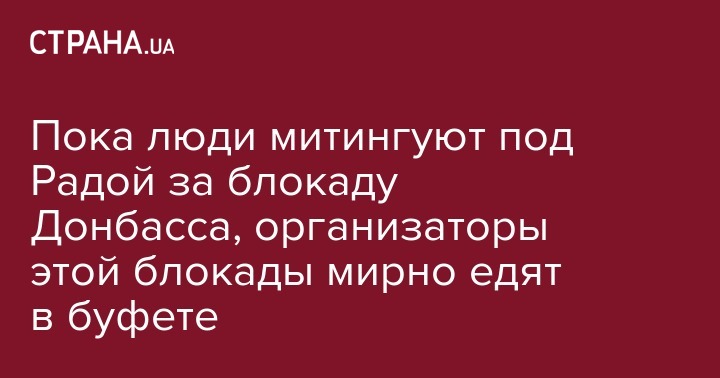 Журналисты застали народных депутатов от "Самопомощи" Егора Соболева и Семена Семенченко, которые были одними из организаторов блокады Донбасса, за которую сейчас партия "Укроп" митингует под Радой, мирно завтракающими в парламентской столовой. Об этом на своей странице в Facebook сообщил журналист Василий Крутчак.
