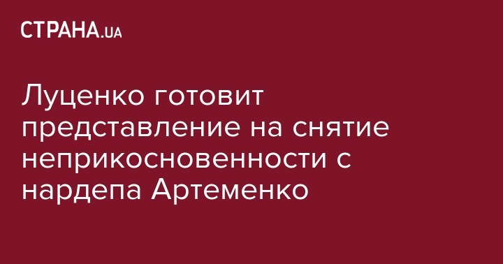 Генеральный прокурор Юрий Луценко считает, что вскоре с нардепа Андрея Артеменко снимут неприкосновенность.