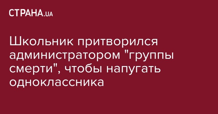 Несовершеннолетний мальчик, учащийся в одной из школ города Хуст Закарпатской области, запугивал своего 15-летнего одноклассника в социальных сетях. Он представлялся жертве "розыгрыша" администратором "группы смерти" и угрожал физической расправой. Несовершеннолетнего "шутника" задержали правоохранители.