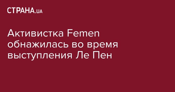 Выступление Ле Пен было посвящено ее внешнеполитической программе. В самом начале, когда политик только стала говорить, в зале в полный рост встала девушка встала и сняла с себя часть одежды.