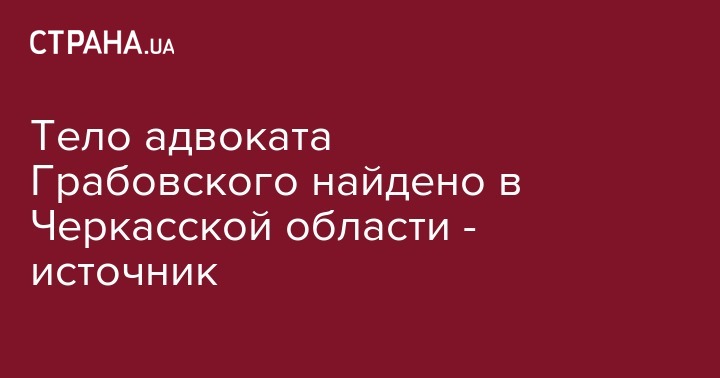 В то же время собеседник агентства не уточнил каких-либо других деталей. В свою очередь в управлении полиции Киевской области опровергли информацию коллеги Грабовского адвоката Оксаны Соколовской, что тело мужчины было найдено на территории столичного региона, передает издание.