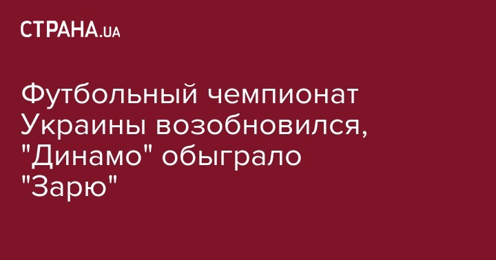 После трехмесячной паузы на футбольные поля страны вернулся национальный чемпионат среди клубов Премьер-лиги. В центральном матче 19-го тура киевское "Динамо" в Запорожье победило луганскую "Зарю" - 2:1. Об этом сообщает "Укринформ"
