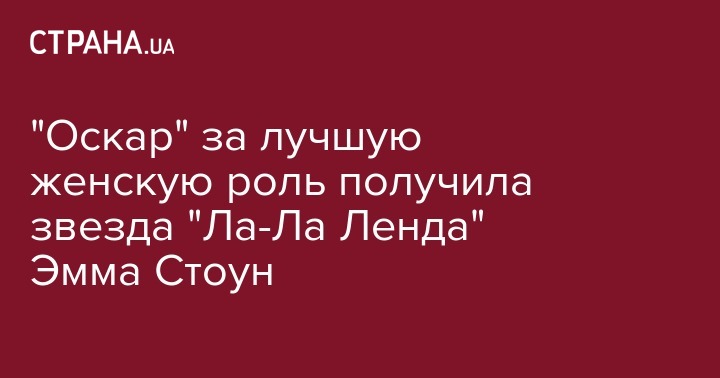 "Оскар" за лучшую женскую роль в 2017 году получила  звезда "Ла-Ла Ленда" Эмма Стоун, передает корреспондент "Страны". Это уже шестая статуэтка для этой картины.