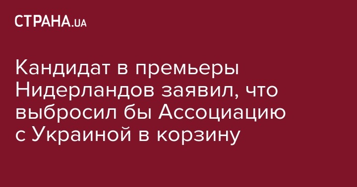Один из кандидатов в премьер-министры Нидерландов Сибранд Бума заявил, что он "выбросил" бы законопроект о ратификации Соглашения об ассоциации Украина-ЕС "в корзину". Бума является кандидатом от христианско-демократической партии CDA, передает EUobserver.