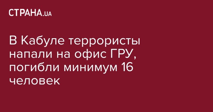 В столице Афганистана Кабуле боевики "Талибана" напали на офис главного разведывательного управления, в результате чего погибли по меньшей мере 16 человек, еще около 100 получили ранения. Об этом сообщает ABC News.