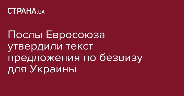 Послы Европейского Союза на заседании Комитета постоянных представителей стран-членов ЕС утвердили текст законодательного предложения предоставить Украине безвизовый режим, который был согласован по результатам межинституциональных переговоров.
