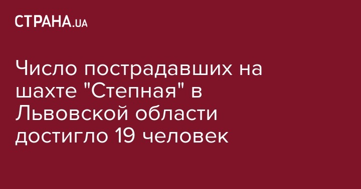 Число пострадавших на шахте "Степная" в Львовской области достигло 19 человек