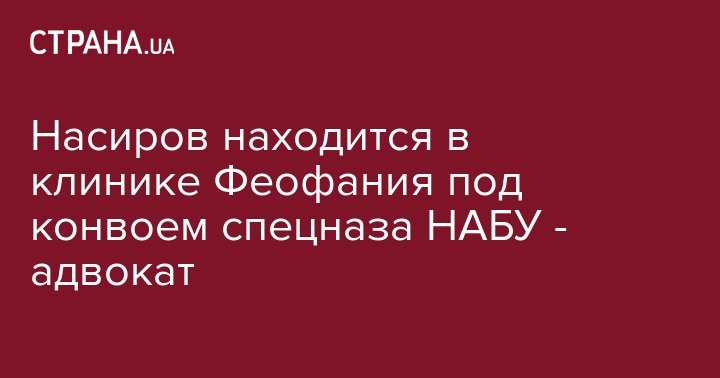 Насиров находится в клинике Феофания под конвоем спецназа НАБУ - адвокат