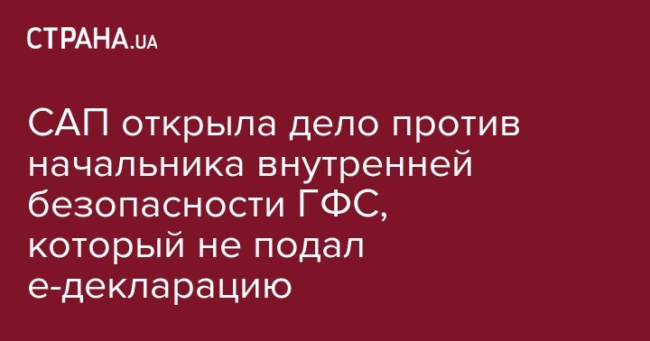 САП открыла дело против начальника внутренней безопасности ГФС, который не подал е-декларацию
