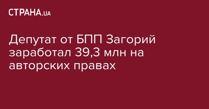 Загорий задекларировал 39 335 932 гривны в графе "авторское вознаграждение, другие доходы от реализации имущественных прав интеллектуальной собственности".