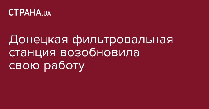 "Восстановлена работа Донецкой фильтровальной станции. Утром ремонтники КП "Вода Донбасса" в сопровождении представителей СЦКК и мониторинговой миссии ОБСЕ зашли на станцию и начали восстановительные работы. Сейчас станция работает, насосы начали подавать воду в сети и городские резервуары", - отметил Жебривский.