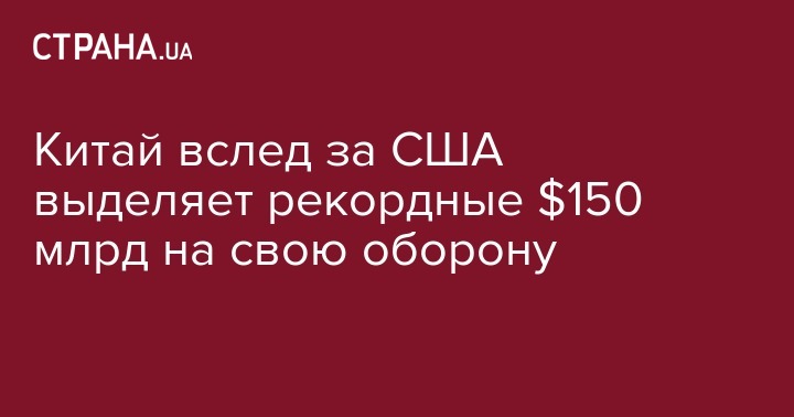"Оборонный бюджет Китая в 2017 году впервые в истории страны превысит отметку в один триллион юаней и составит 1,044 триллиона юаней ($151 млрд). Об этом в воскресенье, 5 марта, в день начала Всекитайского собрания народных представителей, сообщили в министерстве финансов КНР", - пишет издание.