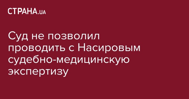"Суд отказался удовлетворить ходатайство адвокатов Насирова о проведении суд мед экспертизы для выяснения состояния здоровья Насирова и его способности присутствовать на заседании. Причина отказа - недостаточно доказательств. Судья не увидел оснований для этого", - сообщает собкор "Страны".