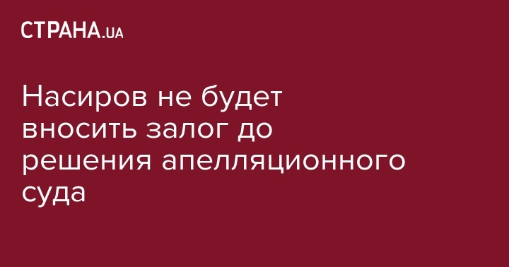 Также он отметил, что Насиров не будет вносить залог в 100 миллионов гривен до решения Апелляционного суда.