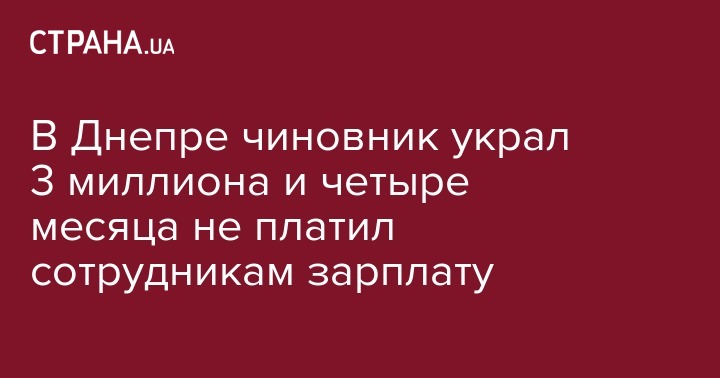 В Днепре чиновник украл 3 миллиона и четыре месяца не платил сотрудникам зарплату