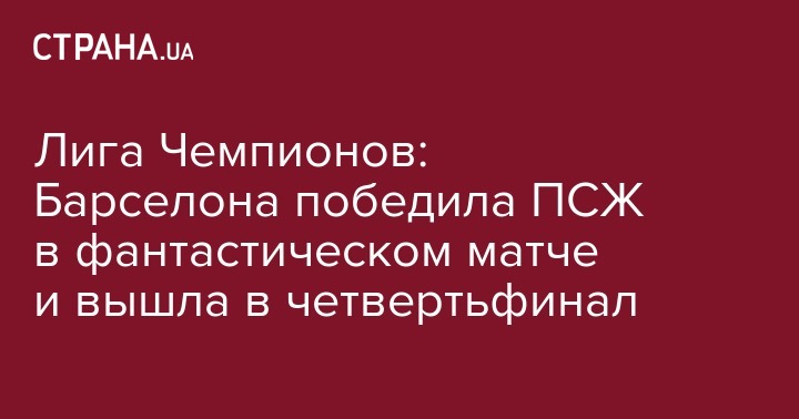 Лига Чемпионов: Барселона победила ПСЖ в фантастическом матче и вышла в четвертьфинал