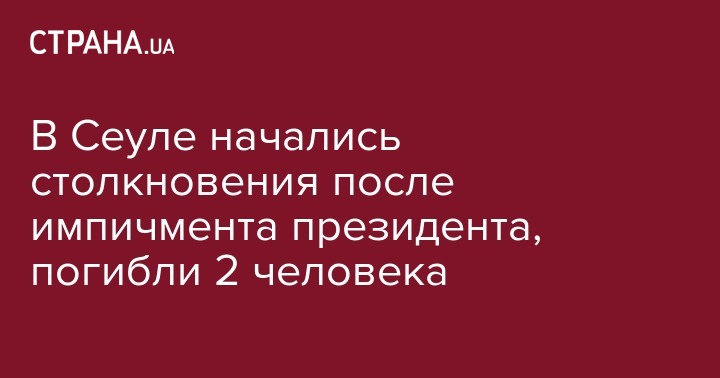 В ходе столкновений в центре Сеула, после того, как суд утвердил отставку президента Пак Кын Хе, погибли 2 человека. Об этом сообщают РИА Новости.